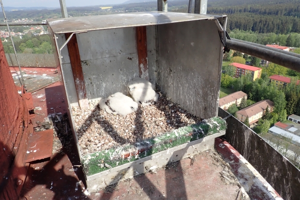 Instalace budky proběhla v lednu roku 2016. Po rekonstrukci komína v roce 2018 byla budka vyměněna. Hnízdění prokázáno v roce 2019 kdyby pár vyvedl dvě mláďata, stejně jako v roce 2020.