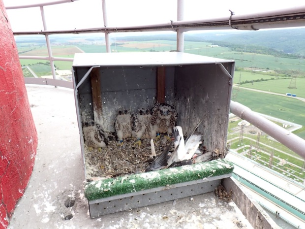Od ornitologa Václava Berana, pracovníka společnosti ALKA Wildlife, o. p. s., dostalo každé ze sokolích mláďat dva hliníkové kroužky. Jeden značí, že jde o sokola z České republiky. Ten se kontroluje při odchytu, druhý pak umožňuje kontrolu na dálku pomocí dalekohledu. „Právě díky kroužkům a fotopasti, jsme mohli identifikovat rodičovský pár“, konstatoval po prostudování fotografií z fotopasti Václav Beran, výzkumný pracovník ALKA Wildlife, o. p. s., jinak také zoolog a kurátor sbírky Muzea města Ústí nad Labem. „Všechna mláďata jsou zdravá, rodiče o ně řádně pečují a zásobují je dostatkem potravy. Opět jde o genderově vyvážený pár, tedy o dvě samičky a dva samečky“. Na ventilačním komíně zůstanou mláďata přibližně ještě jeden až dva měsíce. Pak se rozletí do světa, stejně jako naši hokejisté.
